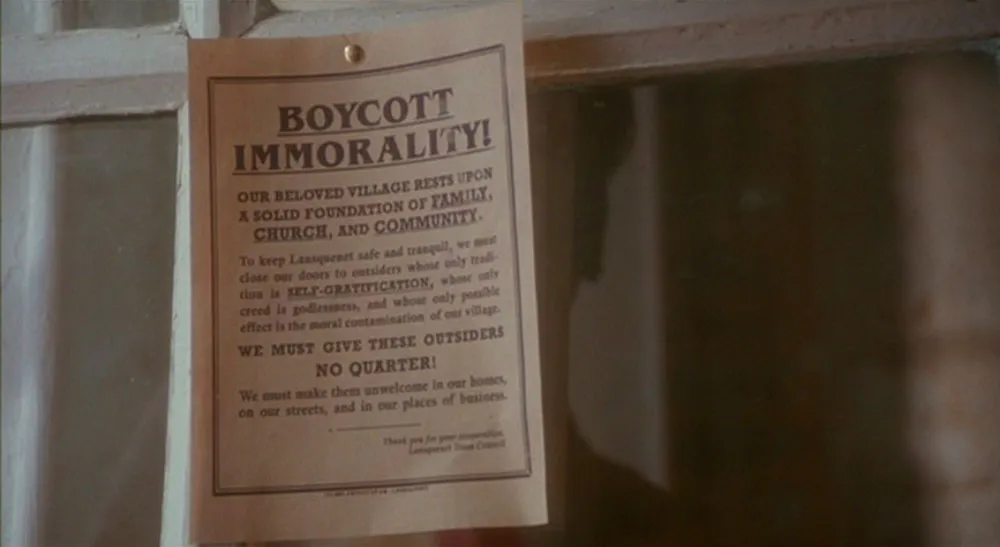 The movie is set in a small town in provincial France, mid-1950s. About halfway through the film, the town’s mayor puts up notices forbidding anyone to eat anything but bread and weak tea during Lent (which of course coincides with the opening of the new chocolaterie). I almost laughed when they showed a close-up of the notice. The headline was set in ITC Benguiat, a typeface which debuted in 1978 and was mainly popular in the ’80s.
