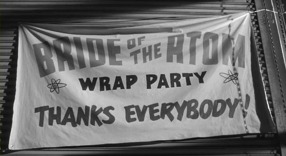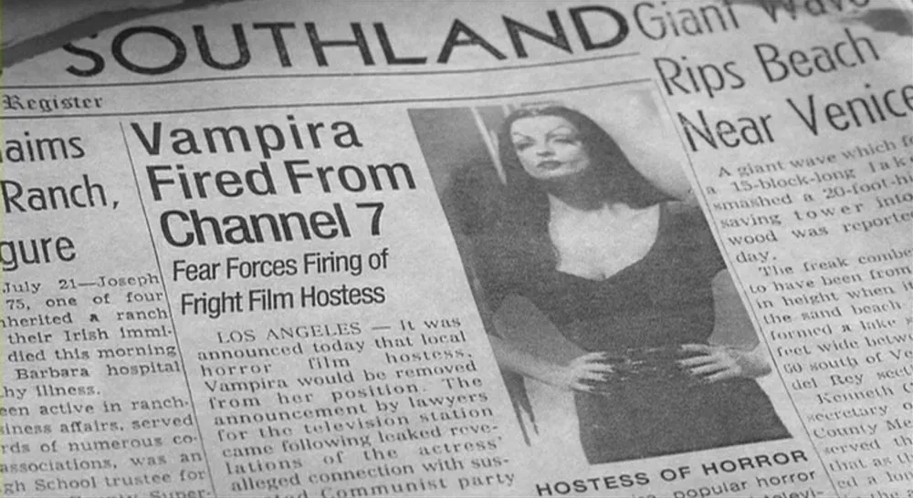 It starts out well, perfectly matching the lettering style of a real 1950s Ed Wood movie in the opening credits, but as soon as signs and newspapers start appearing, things just go downhill. Close-ups of newspapers feature headlines set in various members of the Helvetica family next to vintage headlines apparently taken from real newspapers (mostly Erbar Light, 1934).