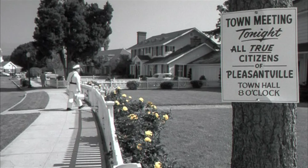 Pleasantville (1998, New Line Cinema). This is a film that seems to be obsessed with details, as if they expected it to be viewed under a microscope by nit-pickers like me.